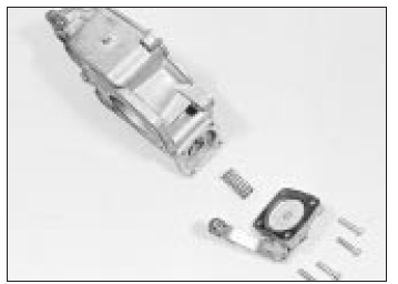 9. Undo the four screws and remove the accelerator pump cover, diaphragm, and spring from the float chamber housing (see illustration).